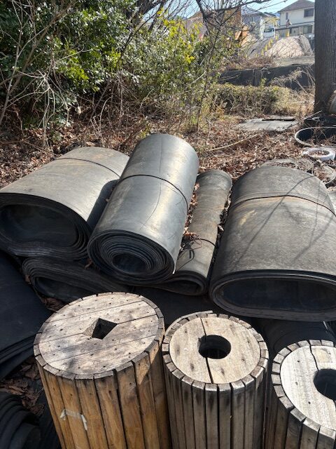 お知らせ2025.11.11中古ベルト 入荷 あてゴム、敷物に!幅70㎝x10m 厚み7~9㎜ 糸入り